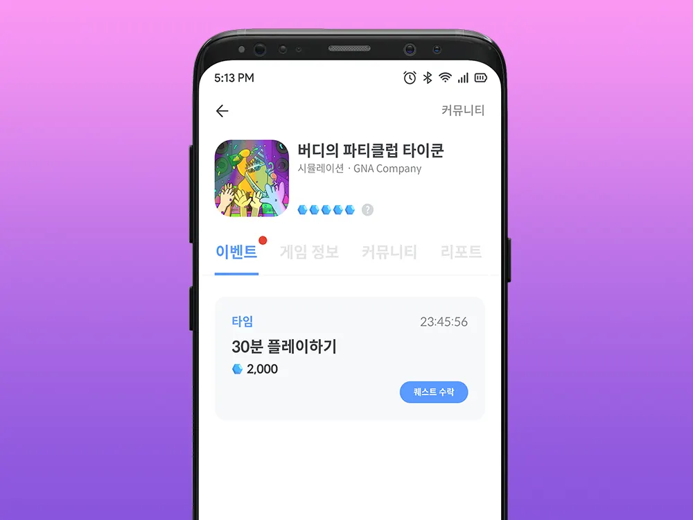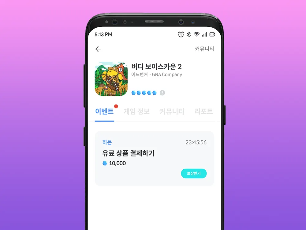 매일 정해진 시간만큼 플레이하면 포인트를 지급하여 Retention, Playtime을 최적화 해드립니다.