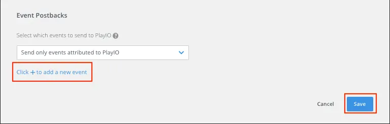ATTRIBUTION > Partner Configuration 메뉴에서 [Add a Partner] 버튼을 눌러 'PlayIO' 파트너를 검색하고 추가해주세요.