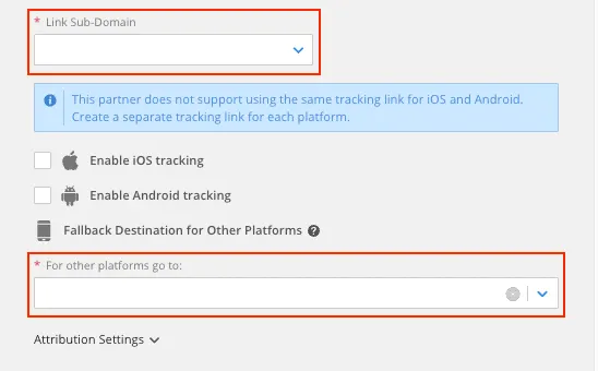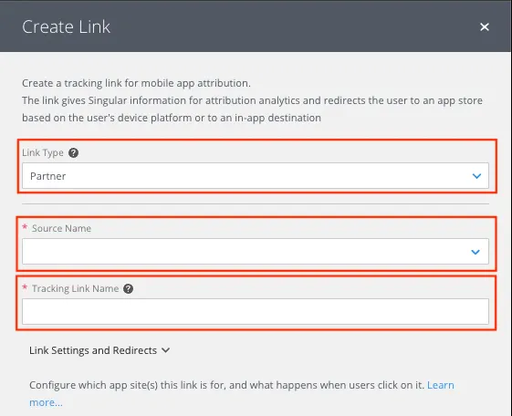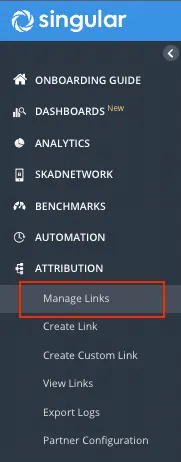 ATTRIBUTION > Manage Links 메뉴에서 우측 상단 [Create Link]를 눌러 링크를 생성해주세요.
