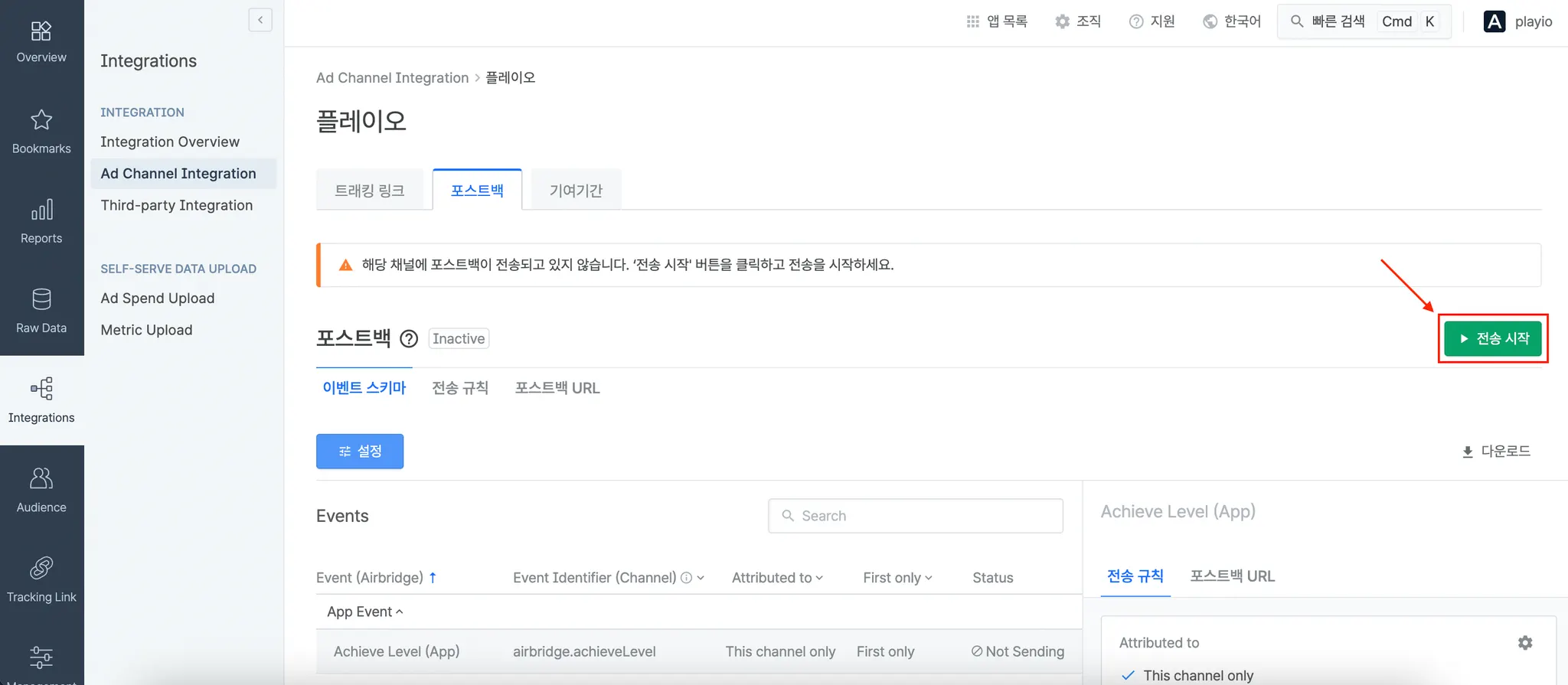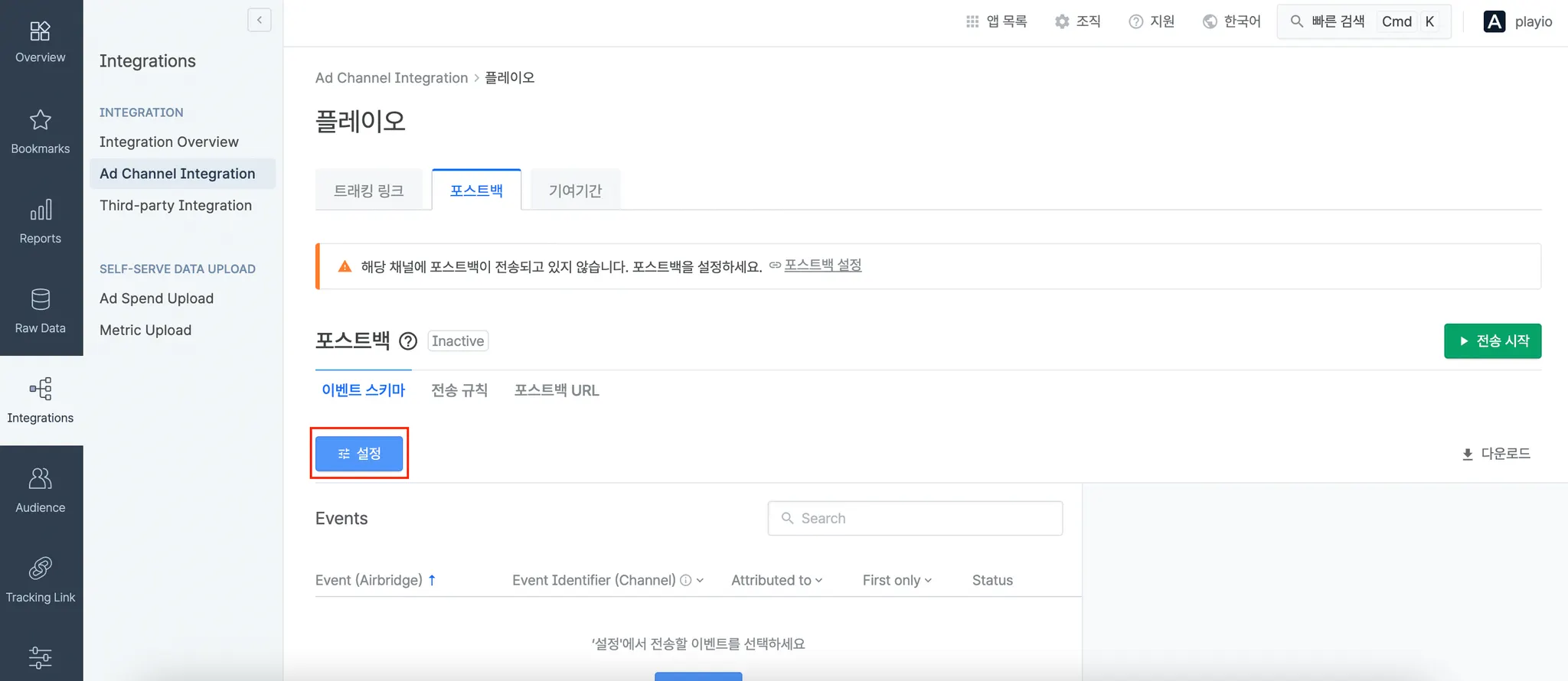 [Integrations] > [Ad Channel Integration] 에서 ‘Playio’를 검색해주세요.